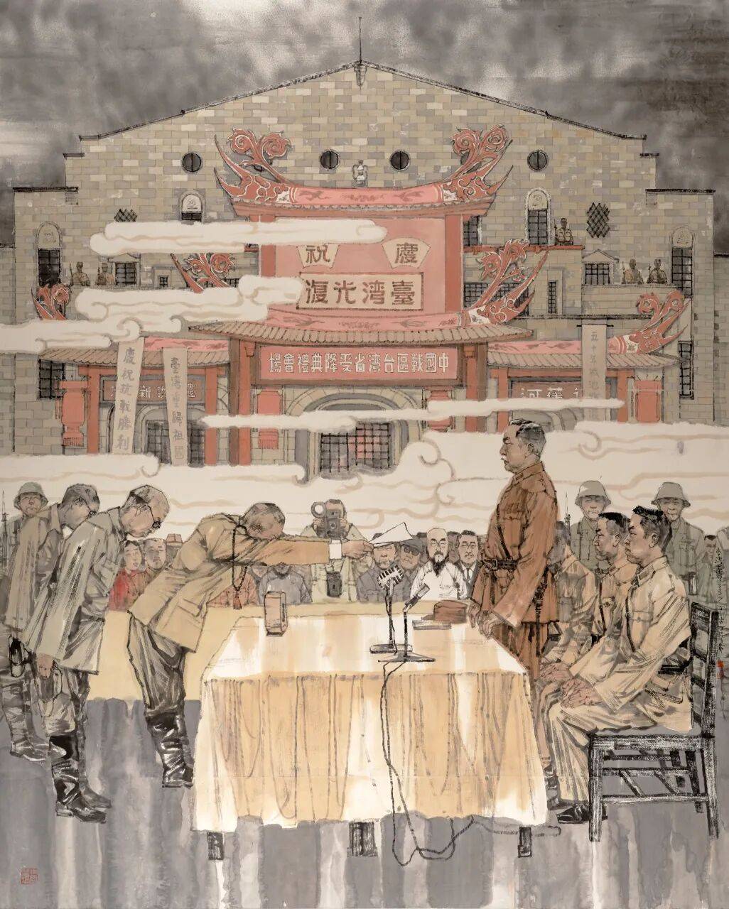 上海觉群书画院副院长丁小方与丁阳父子合作绘制《台湾光复》,这是首幅以“台湾光复”为主题的中国画作品,以此铭记历史,缅怀先烈。